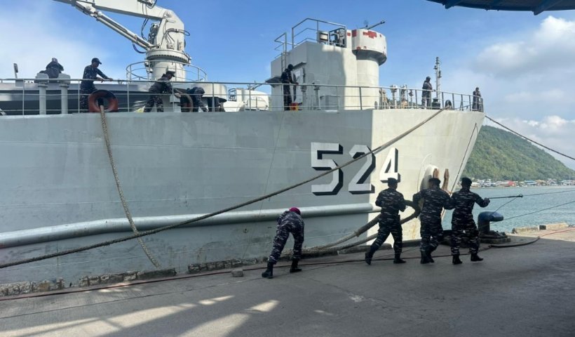 KRI Teluk Calang-524 Sandar di Pelabuhan Gorontalo, Jemput Personel Yonif 713 untuk Latihan Pamtas